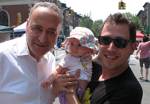 Chuck Schumer cares about your vote, but not your safety. So the next time you see the senator around the neighborhood, as I did at a 7th Avenue street fair last summer when this picture was taken, ask him why he’s devoting his time, energy, and influence towards removing a traffic safety project that nearly 90% of his Brooklyn neighbors love. Oh, and it’s not just the bike lane in his own backyard that’s drawing his attention: