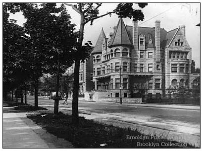 Here’s a great shot of the historic Hulbert Mansion at 49 Prospect Park West, which is now home to the Poly Prep Lower School. You can make out the overhead cable of the trolley line. The picture was taken in the 1930s. As others have noted, street design is never sacrosanct, but rather it’s something that changes with time and that’s re-evaluated as new technology and challenges become a part of our world.