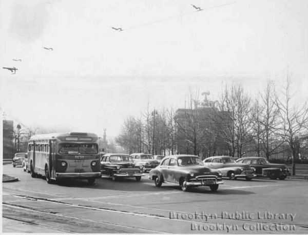 There’s some real gold in the Brooklyn Public Library’s online photograph collection, especially for transportation geeks. I’ve posted some beautiful shots before of Prospect Park West and Grand Army plaza from the turn of the 20th century, but I recently dug into the BPL archives and found some telling pictures from later days.