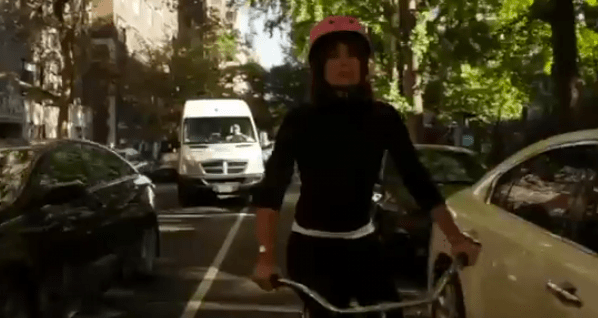 - Porizkova’s spot makes a subliminal case for separated bike lanes. Check out this screen shot and ask yourself what would have happened had Mrs. Ric Ocasek been run over by a white van during the filming: