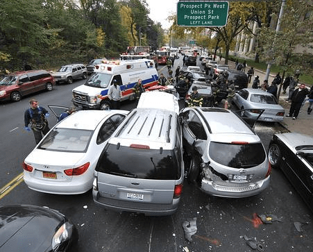 You can be sure that this incident — which sent seven people, including two children, to the hospital — was preceded by a fair amount of noise, including the rumble of car engines, honking horns, and screeching tires. It must have been kind of terrifying.