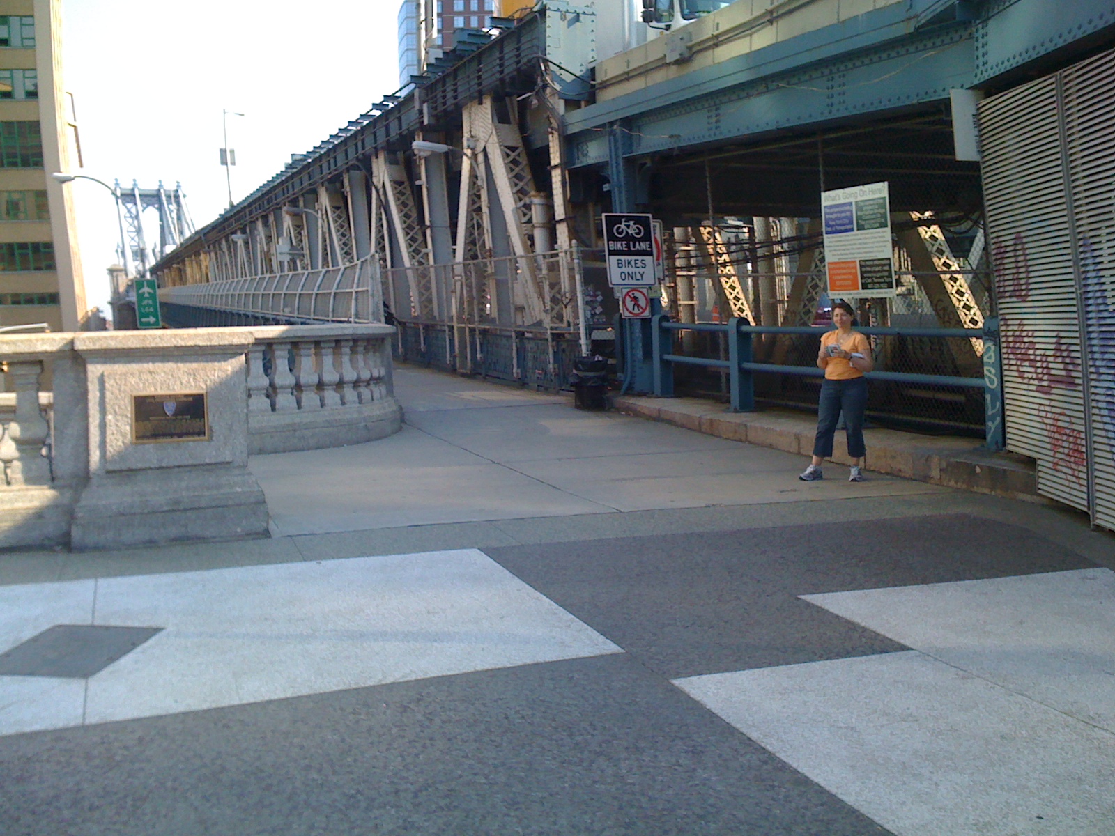 After that, it’s smooth sailing. DOT had staffers on hand to pass out maps in the pedestrian plaza, which is now the main throughput for cyclists as they go up to the bridge.