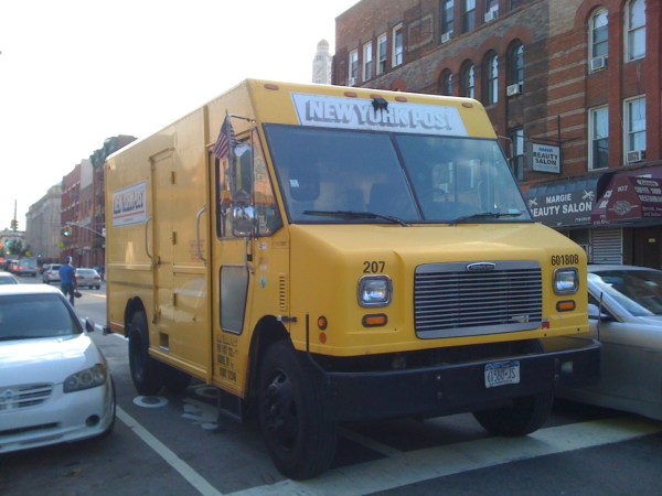 Say what you will about the New York Post, but at least they’re consistent. Their attitude toward bike lanes extends all the way from the pages of the actual newspaper to their delivery trucks in the street.