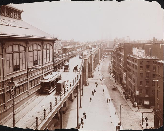 Amazingly, this configuration, with its railroad, streetcar, pedestrian walkway, and space for horse-drawn carriages, moved more people than the six lanes of car traffic and pedestrian walkway/cyclist path layout we know today.