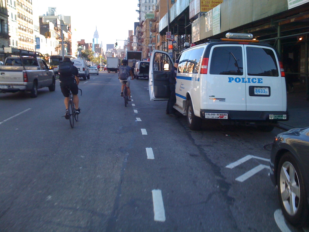 Given the Bowery’s proximity to the site of New York’s most recent bike-related tragedy, the death of Jeffrey Axelrod, and the fact that the Bowery intersects one of the city’s most dangerous streets, it’s amazing to me that the DOT still hasn’t done anything to make this detour safer.