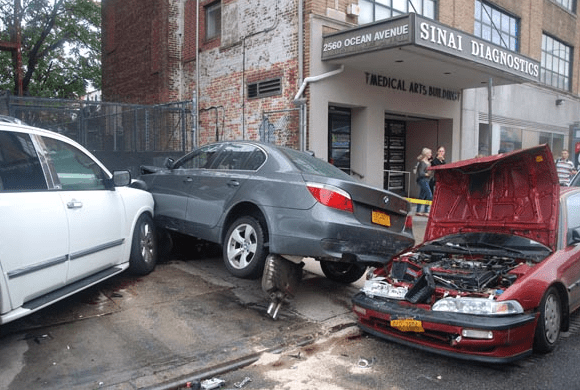 I recall from Streetsblog a few years back that Clown Fidler’s oil-war chariot is an “Infiniti”. I do hope he wasn’t (directly) involved in this violent, pedestrian-injuring crash!