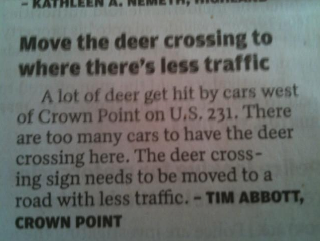 I’m waiting for Alex Nazaryan to write an editorial for the Daily News in which he criticizes deer for being “illiterate, blind or merely – this is our guess – oblivious to all man-made law.”