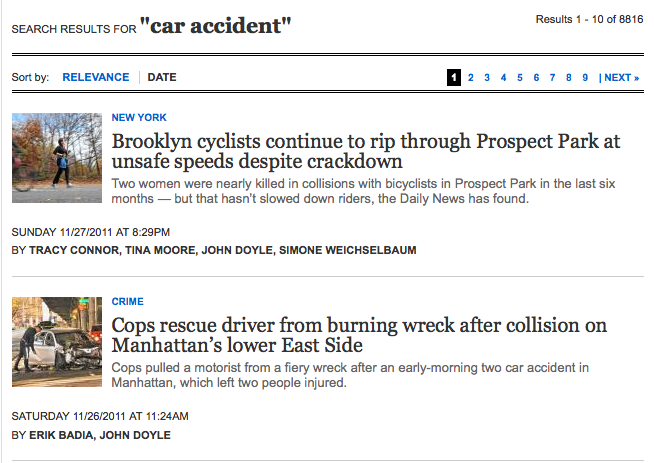 If you’re counting, it took four reporters to write one story about two bike/ped collisions in Prospect Park over the past six months but a high-speed drag race on FDR drive that sent two people to the hospital in one night took the work of just two reporters.