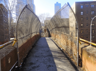 Above is a pedestrian bridge leading to East River Park, one of the many walkways over FDR Drive. While not completely enclosed like the one over the Prospect Expressway, it still doesn’t invite feelings of freedom or openness.