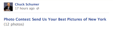 Facebook is transitioning to a new Timeline format, and Senator Schumer needs your help in picking a cover photo of New York. From the breathtaking Adirondacks and Niagara Falls, to the rolling vineyards of the Finger Lakes and the historic Catskills, and from the majestic Hudson Valley down through the Big Apple and Long Island to the sands of Montauk, New York State is full of natural (and man-made) beauty, and we want your help in capturing it.