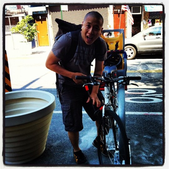 Bikes on the sidewalk (mine is on the right) will soon be parked on the street, leaving more room for pedestrians.