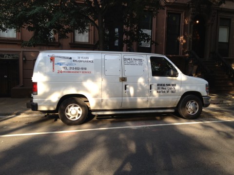 I’m willing to bet that this van, as much as ad for its owners business as it is a means of transportation, prompted no calls to 311 or the Landmarks Preservation Commission. Granted, the van itself is not a permanent fixture, but the parking space is; what comes in and out of it fits or does not fit the historic aesthetic to varying degrees that change with each alternate side parking day. This van could very well be replaced by a Model T from some automobile enthusiast’s collection, but it could also be replaced by the Oscar Meyer Weinermobile.