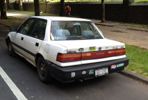 Remember, bike share stations interfere with the neighborhood’s historic character, but a 1993 POS laden with bumper stickers is in keeping with brownstone Brooklyn’s historic aesthetic, so long as your history only dates back to the Clinton administration.