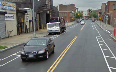 A few weeks ago I had plans to meet a friend in Greenpoint. Before I left I remembered that while the Kent Avenue bike lane is perhaps the gold standard of protected cycling infrastructure in the city, the physical separation switches to a mere painted buffer after North 13th Street. At North 14th Street, where Kent turns into Franklin Street, even the green paint disappears. I also remembered that Franklin Street is a favorite resting spot of livery car drivers and truckers who frequently park their vehicles in the bike lane and wide buffer. It’s not an exact match of the location where the bike lane switches from protected to buffered, but this screen grap from Google Maps shows a garbage truck parked in the Franklin Street bike lane:
