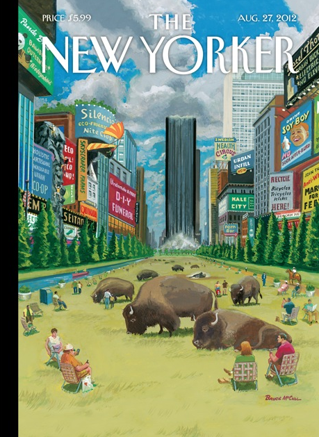 I thought this last week’s New Yorker cover was okay, although I suspected that illustrator and avid motorist Bruce McCall meant it as a mild jab at the mayor’s push for a cleaner, calmer, and safer city. Then I read McCall’s explanation and realized there was nothing mild about it: