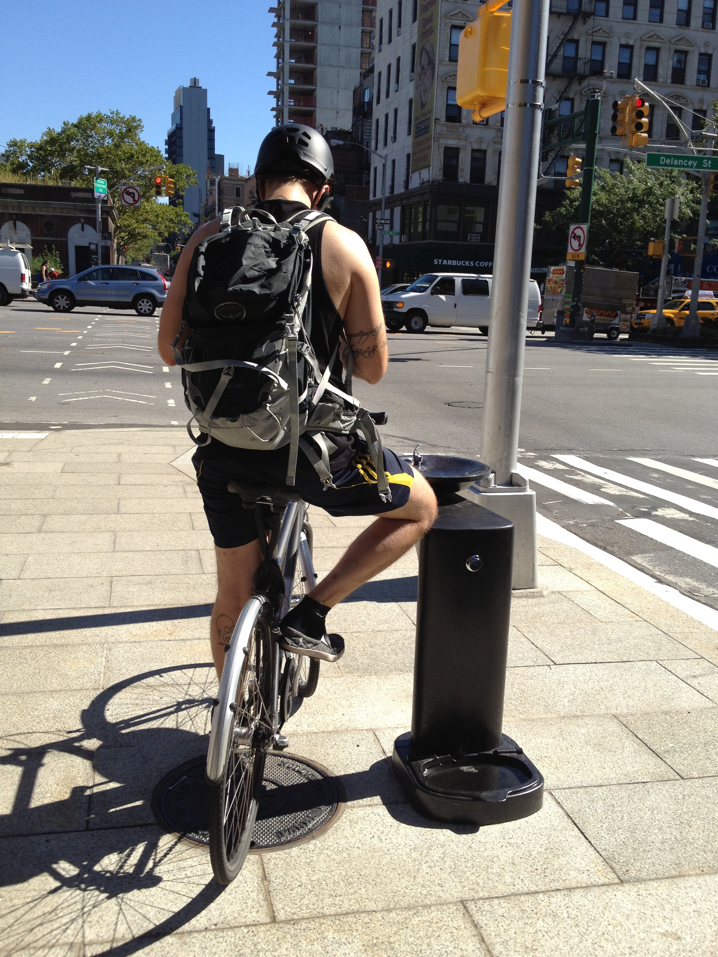 The city might not be too keen on the idea of hundreds of cyclists putting their knees up against a public water fountain, but if it’s what hundreds of cyclists wind up doing they might want to think about making it official. It would be just a tiny way for the city to say “thank you” while responding to how people are actually using their streets.