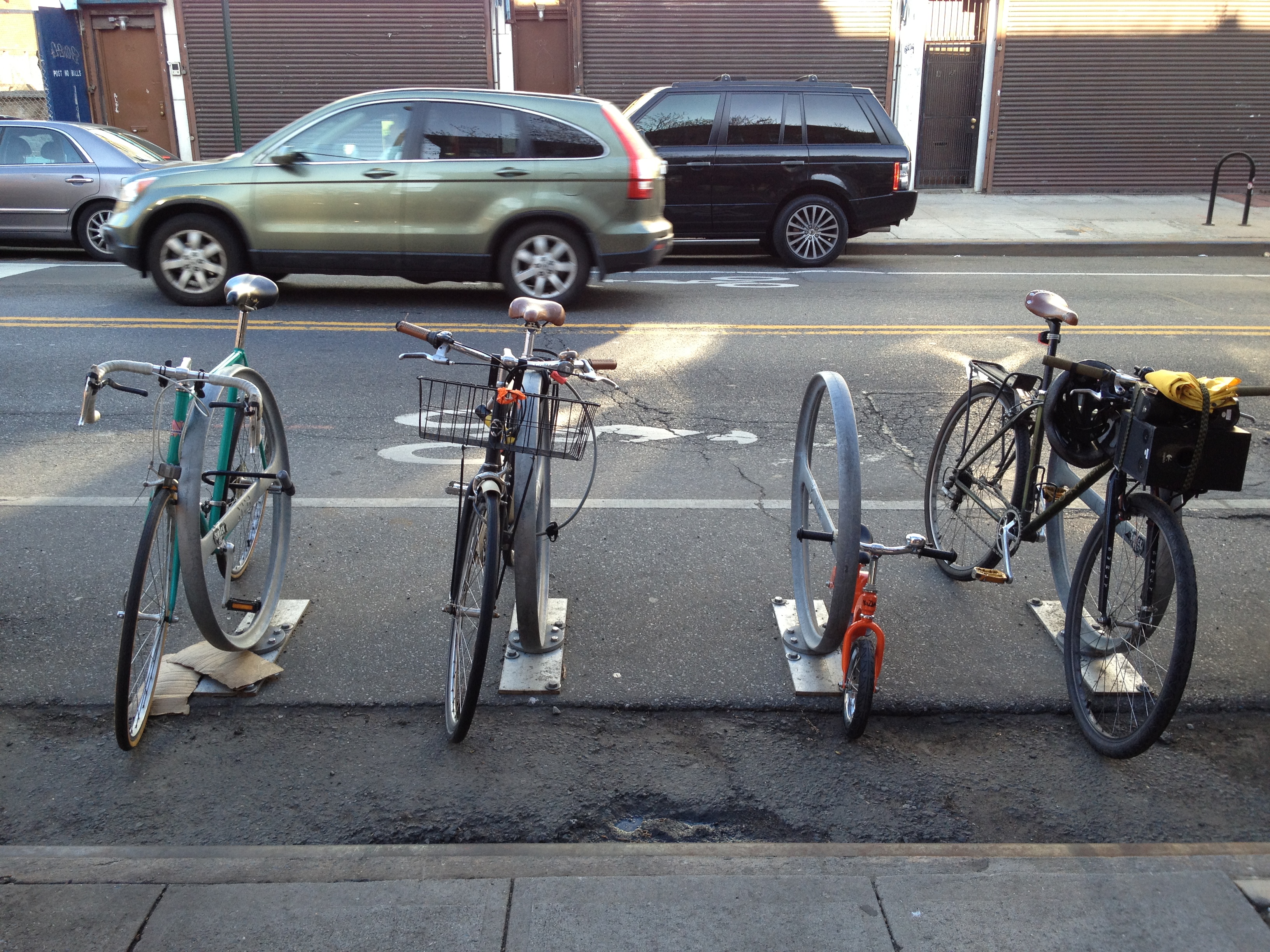 The bicycle corrals are slated for a stretch of Grand Street near Driggs Avenue (outside Williamsburg Cinemas), Broadway near Berry Avenue (near Marlow and Sons), and Frost Street at Meeker Avenue.