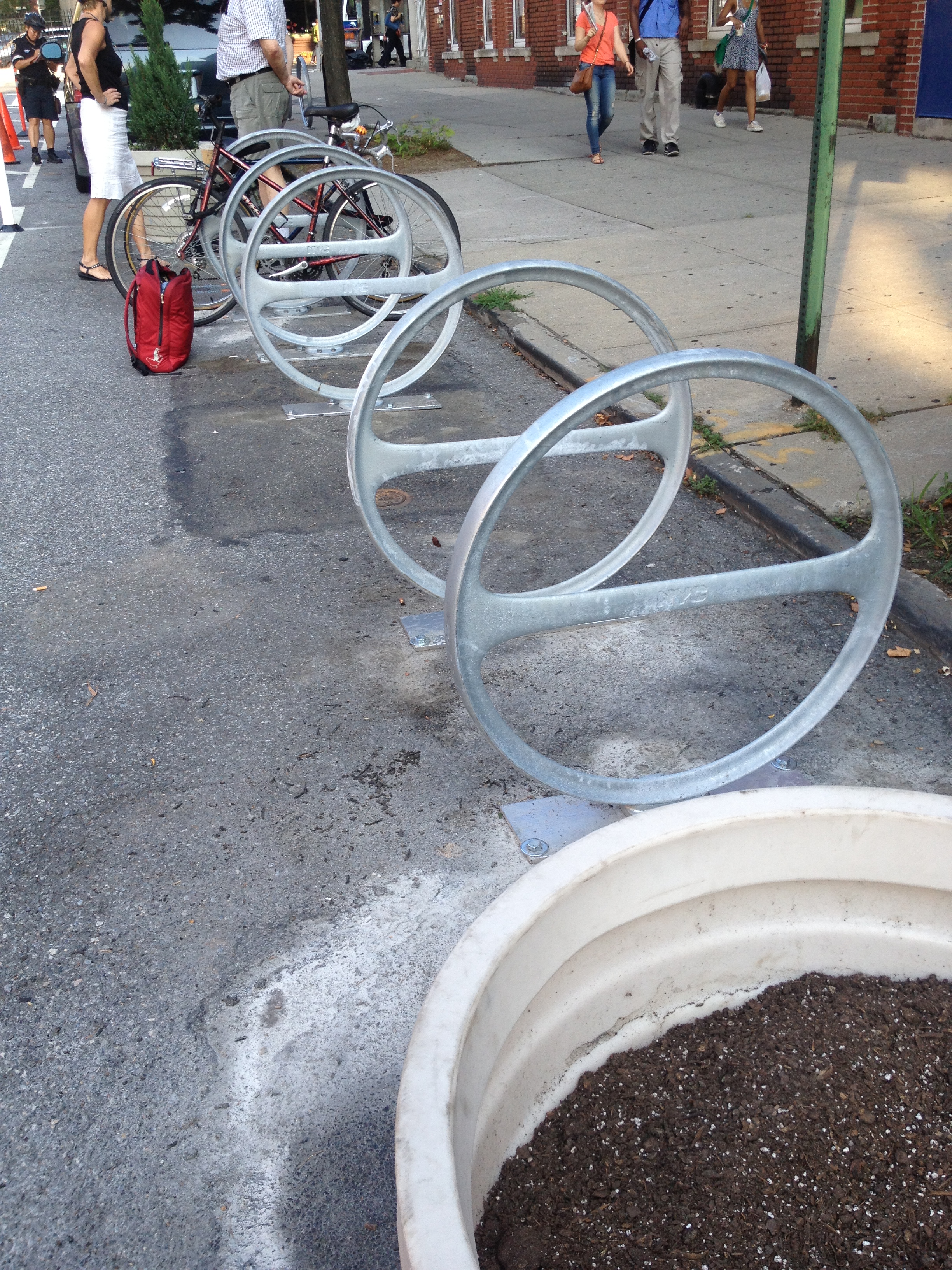 It was installed either Tuesday or Wednesday morning by DOT. It was kind of interesting watching them set it up and measuring carefully between the spaces. I’ve always seen the after installation, but not the installation and it was like finally seeing a baby pigeon-rarely seen but obviously occurring.