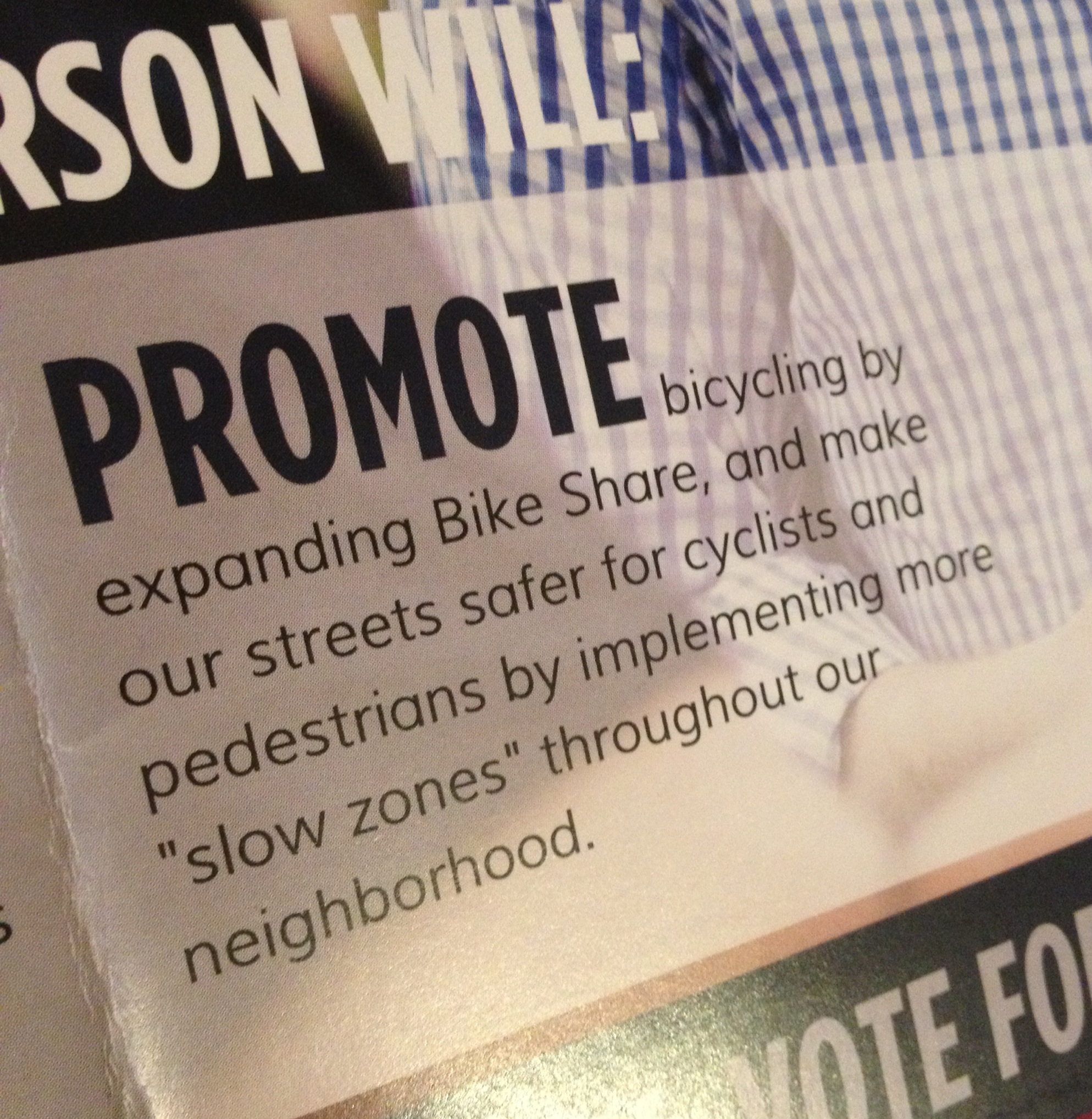 Pierson’s mailing also features some livable streets promises: