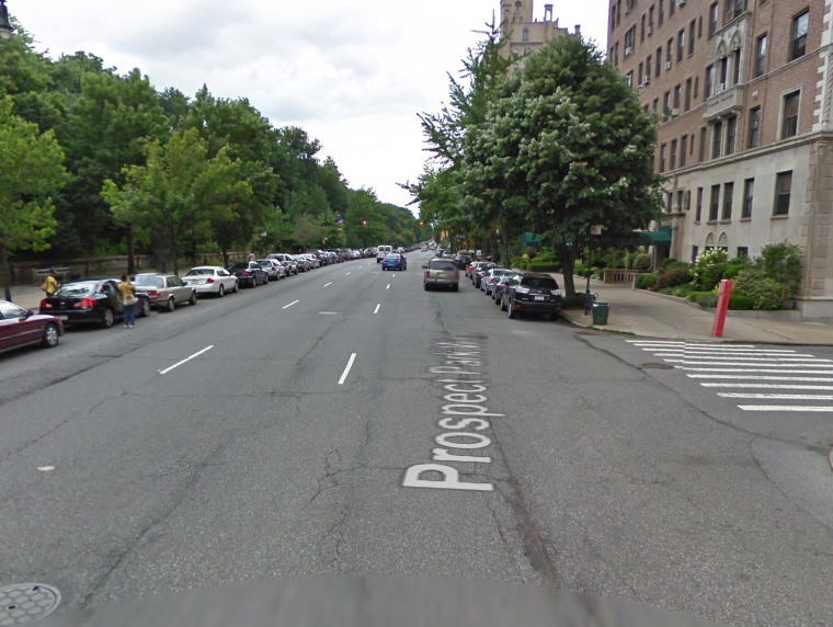 Here’s Prospect Park West in 2009, before the installation of the protected bike lane: