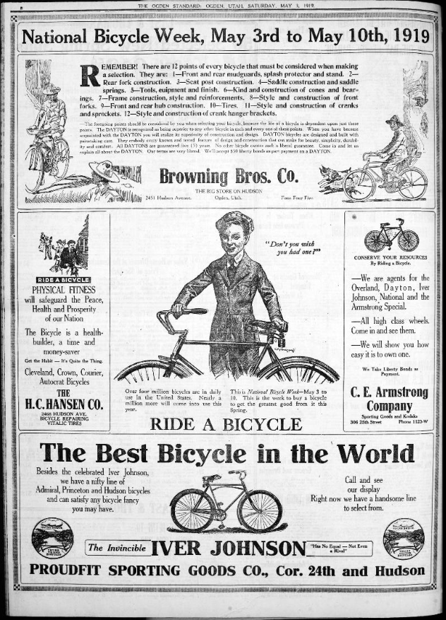 Via From Wheels to Bikes, a spread in the Ogend (UT) Standard celebrating National Bicycle Week some ninety four years ago.